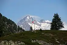 The HB9XBG antenna is a vertical dipole antenna for short wave radio amateurs. It was developed by the Swiss radio amateur Walter Kägi, whose call sign HB9XBG is also the designation of the antenna.[1] During the test phase in 2020, HB9XBG built two vertical dipoles – one for the 20-metre amateur radio band and another for the 40-metre band. The antennas were tested on Simplon Pass at an altitude of 2,040 metres. The structure of the HB9XBG antenna was first published in 2020 in HBradio, the journal of the Union of Swiss Short Wave Amateurs.[2][3]