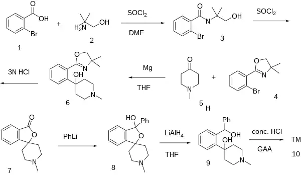 2. Klioze SS, Bauer VJ, Geyer HM (April 1977). "Synthesis of spiro[isobenzofuran-1(3H),4'-piperidines] as potential central nervous system agents. 2. Compounds containing a heteroatom attached to nitrogen". Journal of Medicinal Chemistry. 20 (4): 610–612. doi:10.1021/jm00214a039. PMID 850252.
