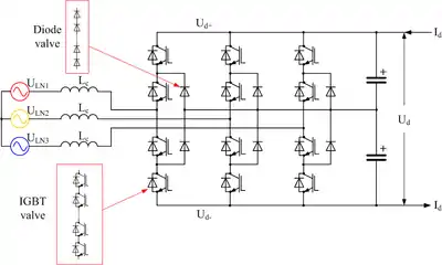 ![]() Three-phase, three-level, diode-clamped voltage-source converter for HVDC |