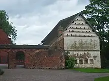 A brick dovecote possibly originating from the seventeenth century is linked by a wall to the east side of the Hall.[15]