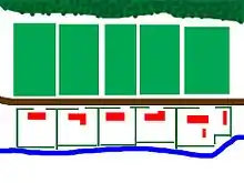 A Hagenhufendorf (German: also Bachhufendorf, Hagenhufensiedlung or Hägerhufensiedlung) is an elongated settlement, similar to a Reihendorf, laid out along a road running parallel to a stream, whereby only one side of the road has houses, whilst on the opposite side are the hides (Hufen), the handkerchief-shaped farmer's fields of medieval origin, about 20 to 40 morgens in area.