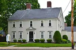The Hager–Mead House is a historic house at 411 Main Street in Waltham, Massachusetts. The 2+12-story wood-frame house was built in 1795, and is one of the city's small number of 18th-century houses. It is five bays wide and two deep, with chimneys set in the ridge, and a center entry flanked by Doric pilasters and topped by a six-pane transom window and modillioned cornice. The house was built by Samuel Hager, a farmer from Watertown, who promptly sold it Stephen Mead, a blacksmith, in 1796.[2]