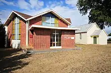 Hagley has a Uniting Church, built in 1957, adjacent to the original Methodist Chapel which dates from 1859. Early Wesleyan (Methodist) services were held in the 1840s in a farmhouse in Hoggs Lane.[61] Local Methodists began raising funds for a church in the late 1850s. Land was donated by a George Scott and, at a cost of 370 pounds, a 40-by-22-foot (12.2 by 6.7 m) wooden chapel and two-roomed caretaker's cottage were built. This Methodist chapel opened for services on 27 March 1859.[61] What is now Hagley Uniting Church was built next to the old Methodist church in 1957. This newer building is of a Modernist design with coloured glass and geometric architectural shapes.[62] The Uniting Church site was listed on the Tasmanian Heritage Register in June 2009.[63]