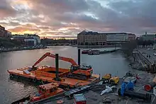 In the 2020s, tram tracks will be built on Hakaniemenranta as part of the Kruunusillat project between the Helsinki Central Station and Laajasalo.[3][4] A bridge about 400 metres long will be built from the Kulttuurisauna building at the eastern end of the street to the Nihti island.[5] Siltavuorensalmi will be partly filled with reclaimed land, and a hotel and new 7-floor apartment buildings will be built along Hakaniemenranta.[6][7] There are plans for apartments for about 1250 inhabitants along the street.[8] The Hakaniemi bridge will be replaced with a new bridge, which will connect to the Hakaniemenranta street on the same level, eliminating the current ramp connections.[8]