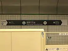 Hakozaki-Kyūdai-mae Station (箱崎九大前駅, Hakozaki-Kyūdai-mae-eki) is a subway station on the Fukuoka City Subway Hakozaki Line in Higashi-ku, Fukuoka, Japan. Kyūdai-mae means "in front of Kyushu University". Its station symbol is a pine branch with leaves which branch look like Kyushu University's initials Chinese character 九, because a pine‐covered area is named Ciyono-matsubara (千代の松原) is near this station.