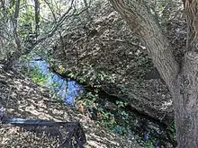 A view of Hale Creek at its outflow from Neary Quarry in Los Altos Hills, California, from the Mary Stutz Path