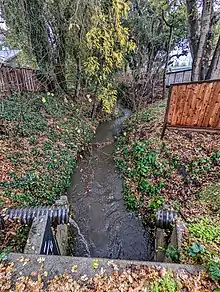 Hale Creek at Marilyn Drive in Mountain View. The creek flows in and out of Mountain View in two short stretches before its confluence with Permanente Creek in Los Altos.