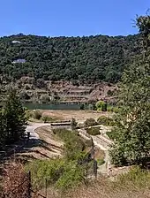 In the 1930s, Neary Rock Quarry was dug on upper Hale Creek.[6] The quarry supplied base rock for the construction of Moffett Field and crushed rock for Highway 101 and I280.[7] In 2006, Los Altos Hills approved the construction of the Quarry Hills subdivision, consisting of 22 upscale homes and an eleven-acre lake, by damming the outflow from the quarry to Hale Creek.[8]