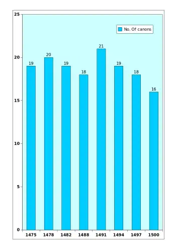 However, the official date for the foundation of Halesowen Abbey, as given by the Premonstratensian order, is 1218,[5] at least three years after the canons regular, known as "White Canons" because of their habit, had set up a community at Halesowen. Such apparent disparities were common with Premonstratensian houses and stem from religious and theological attitudes specific to the order.[lower-alpha 1] In monastic orders generally an abbey requires a chapter of at least 13, so that there can be an abbot or "father" and twelve canons.[lower-alpha 2] Moreover, it seems likely that the Premonstratensians did not count an abbey as fully established until there was an abbey church to consecrate. Finally, several of the later abbeys were dedicated not simply to Mary, mother of Jesus, but specifically, as at Dale (Stanley Park) Abbey ad festum Assumptionis — "for the Feast of the Assumption,"[6] so the abbey would not be inaugurated until the next occurrence of the festival (15 August) after the gathering of a sufficient number in church. All of this could lead to considerable delays. The basic facts about the foundation and dedication of an abbey were established in advance by Bishop Redman, abbot of Shap Abbey, before he carried out regular canonical visitations of Premonstratensian houses in 1478. The text of replies to his preliminary enquiries for that year's visitation of Halesowen: