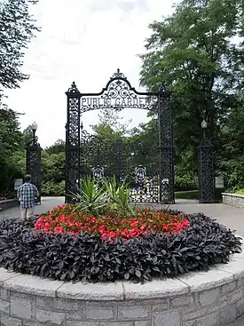 The Halifax Public Gardens are Victorian-era public gardens formally established in 1867, the year of Canadian Confederation. The gardens are located in the Halifax, Nova Scotia on the Halifax Peninsula near the popular shopping district of Spring Garden Road and opposite Victoria Park. The gardens were designated a National Historic Site of Canada in 1984.[2]