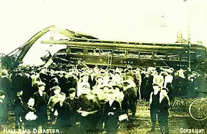 The Hall Road rail accident occurred at 16:37 on 27 July 1905 at Hall Road station between Bootle and Formby north of Liverpool, operated at the time by the Lancashire and Yorkshire Railway. The 16:30 Liverpool Exchange to Southport express collided with a local train which had departed Liverpool ten minutes earlier, and which was to be turned round at Hall Road. The empty local train had been shunted into a siding to allow the express to pass; according to the official report, the points failed to close properly and the signalman was unable to clear the signal for the express. He then worked the points back and forth three times and, unable to clear the signal, waved a green flag to the driver. He had left the points set for the siding and the express was diverted into it and struck the rear of the local train, killing 20 people in the front coach of the express after telescoping occurred. Both drivers survived, having jumped clear prior to the impact.