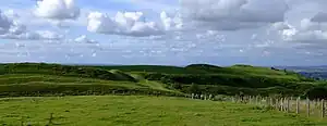 In August 2014, Hambledon Hill fort was acquired by the National Trust for £450,000. The money to buy the hill had come from a Natural England grant and a legacy gift left to benefit Dorset countryside.[6] The hillfort is a Scheduled Monument,[7] as is the adjacent Neolithic causewayed camp.[8]
