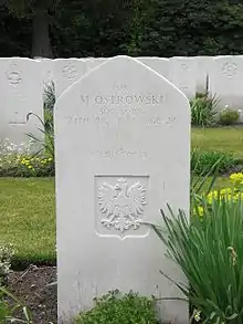 After World War II 1,466 soldiers of Commonwealth nations, who were Air Force crews who had been shot down, as well as part of occupying forces, were buried here.[4] Several years later an additional 378 persons from Commonwealth nations were buried here. Also, 14 soldiers from other nations have their graves located here.[2] The German War Graves Commission (Volksbund Deutsche Kriegsgräberfürsorge) counts 1,889 Commonwealth soldiers of World War II buried here.[3] A list of names of the Commonwealth soldiers who fell in Second World War exists.[5]