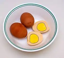 Haminados, also known as chaminados, or braised eggs, is a traditional Sephardi Jewish dish, popular in Israel, and commonly served as an ingredient or accompaniment to a number of dishes. Haminados are an important element of Israeli cuisine, and are commonly prepared on their own or as part of the Sephardi and Mizrahi Jewish Shabbat stew chamin.[1][2][3][4]