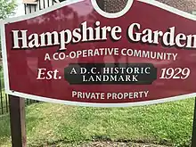 The sign in front of Hampshire Gardens in NW Washington, DC.