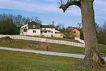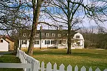 - Farm House – located 1,900 feet (580 m) north of the mansion and next to the slave quarters, a portion is believed to predate the Ridgelys' purchase of the property in 1745.[26][27] The Ridgely family lived here while the mansion was being constructed in the 1780s.[2][25] Thereafter, it was the residence of the farm manager or overseer.[28] After John Ridgely Jr. and his wife Jane vacated the mansion in 1948, they lived here until their deaths.[29]
