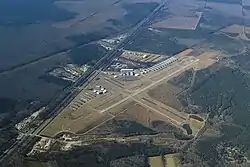 The airport covers 511 acres (207 ha) and has, after an extension completed in 2014, two asphalt runways: 10/28 is 5,350 x 100 ft (1,236 x 21 m) and 2/20 is 3,600 x 70 ft (1,074 x 21 m).[4][5]