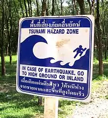 Tsunami warning sign in Khao Lak