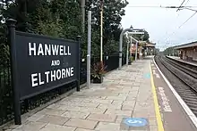 Some of the original station nameboards with the pre-1974 name Hanwell and Elthorne are still on the platforms.