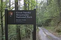 In 1926, conservation groups began buying up land for the creation of the Great Smoky Mountains National Park, which opened in 1934. The park boundary parallels the valley to the south, and includes all of Abrams Creek. A campground and ranger station are now situated at the confluence of Kingfisher Creek and Abrams Creek. Several of the old roads, including the Cooper Road to Cades Cove, the Cane Creek Road to Walland, and the cattle drovers' paths to Gregory Bald, were converted into hiking trails.[10]