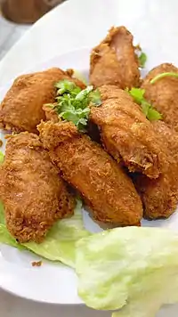 Har cheong gai (simplified Chinese: 虾酱鸡; traditional Chinese: 蝦醬雞; pinyin: xiā jiàng jī; lit. 'shrimp paste chicken'), is a Singaporean fried chicken dish, consisting of fried chicken wings in a batter with fermented shrimp paste.