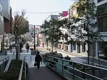 Harajuku (原宿, [haɾa(d)ʑɯkɯ] ⓘ) is a district in Shibuya, Tokyo. Harajuku is the common name given to a geographic area spreading from Harajuku Station to Omotesando, corresponding on official maps of Shibuya ward as Jingūmae 1 chōme to 4 chōme. In popular reference, Harajuku also encompasses many smaller backstreets such as Takeshita Street and Cat Street spreading from Sendagaya in the north to Shibuya in the south.[1]