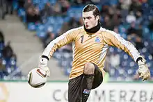 Haraldur Björnsson (born 11 January 1989) is an Icelandic footballer who plays for Stjarnan and the Iceland national football team as a goalkeeper.[1] He was the starting goalkeeper for Iceland U21 at the 2011 UEFA European Under-21 Championship. Björnsson earned his first cap for the senior national side on 13 January 2016, in the 1:0 win over Finland in a friendly match, substituting Ingvar Jónsson at the half-time mark.[2]