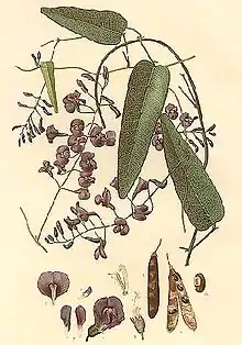 Illustration by Edward Minchen in Joseph Maiden's The Flowering Plants and Ferns of New South Wales, as Hardenbergia monophylla[4]