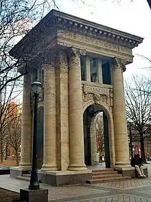 In May 1896, the city of Atlanta commemorated the Erskine Memorial Fountain in honor of Judge John Erskine at the location.[2][3] In order to make room for the fountain, a marble statue of Benjamin Harvey Hill was moved from the park to the Georgia State Capitol.[3] The fountain, designed by sculptor J. Massey Rhind, was later relocated to Grant Park in 1912.[2][4]