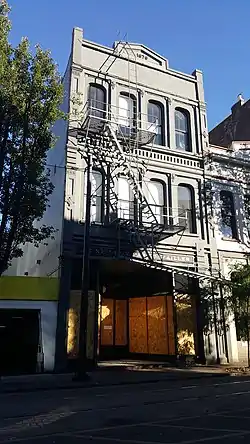 The Harker Building is an historic structure in southwest Portland, Oregon. The building was completed in 1878, and was soon occupied by the Oregon Conservatory of Music. A United Brethren congregation purchased the building in 1918 and created a Chinese Mission on the second level. Thomas Lauderdale purchased the building in 2001, after initially renting the space, and has since hosted many events. The phrase "Je ne veux pas travailler" is now written on the exterior.[1] The cast-iron building has also been used by the Western Picture Frame Company and for Pink Martini rehearsals.[2]