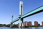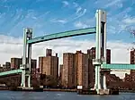 Robert F. Kennedy Triboro Lift Bridge (Harlem Lift Bridge) NY State Route 900G (6 road lanes) Manhattan and Randall's Island 40°48′01″N 73°55′40″W / 40.8003°N 73.9278°W / 40.8003; -73.9278 (RFK Triboro Lift Bridge)