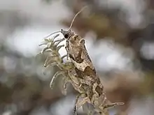The wingspan is about 18 mm. The forewings are fuscous, irrorated (speckled) with whitish and sprinkled with ferruginous and blackish specks. The markings are darker fuscous, with strigulae (fine streaks) of blackish and ferruginous irroration. The hindwings are pale greyish, marbled with darker.[2]