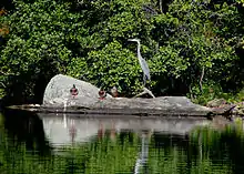 Great blue heron and mallards at Silvermine Lake