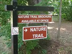 The park features a swimming beach, bathhouse, picnic areas, sports fields, carry-in boat launch, 195 campground sites, cabin, and mini-cabins.[5] The 2-mile (3.2 km) Cedar Run Nature Trail crosses forested areas of the park.[6] A section of beach north of the campers area is pet friendly.[5]