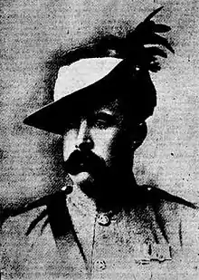 In 1880 Lassetter was commissioned a second lieutenant in the 38th Regiment, becoming lieutenant in the 80th Regiment in 1881. He was involved in an expedition to the Nile in 1884 and was promoted captain in 1887 and major in 1888, when he trained the New South Wales Mounted Rifle Brigade.[1] He commanded the Permanent New South Wales Mounted Infantry Company from 1888 until 1892, when it was disbanded. He then raised the New South Wales Mounted Infantry as a part-time unit spread across New South Wales and commanded it until 1896. It was retitled the New South Wales Mounted Rifles in 1893. Lassetter was promoted to lieutenant colonel in 1895, and led the Australian detachment at Queen Victoria's Diamond Jubilee. He was on the Reserve of Officers in New South Wales in 1898 and 1899, reactivating at the time of the Second Boer War. He was involved in training of the early New South Wales contingents to South Africa and was offered command of the New South Wales Citizens Bushmen in 1900 but declined due to business commitments. He later commanded the 2nd New South Wales Mounted Rifles in the Boer War (1901–02). For his service in the war, he was mentioned in despatches and created a Companion of the Order of the Bath in the October 1902 South African Honours list.[2] Following the regiment's return to Sydney in July 1902, he received a sword of honour from the troopers of his regiment in recognition of his services, presented in a ceremony by the Premier Sir John See.[3]