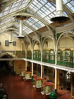 Architectural ironwork exhibition at the Birmingham Museum & Art Gallery. The cast-iron columns and safety rails were made by Hart, Son, Peard & Co