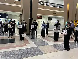Generally, this protest was controlled by the Royal Malaysia Police (RMP).[22] On the day of the strike, the police began investigating the organisers in the context of violating the rules in the country's Movement control order which banned any assembly event.[23] In addition, there were allegations from contract doctors that warnings were given by hospital directors with further action to be taken against those who joined the strike.[23] Through the Special Meeting of the Fourteenth Term Parliament on 27 July 2021, the Minister of Health, Dr Adham Baba assured that no action would be taken against the contract doctor who joined the hartal the day before. The decision was supported by several MPs including former Health Minister, Dr Dzulkefly Ahmad.[24]