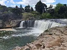 In the Māori language, the word haruru means 'continuous noise or roar'.[2][3] The lagoon on the downstream side of the falls was New Zealand's first river port, used by both Māori and early missionaries.[2][4]
