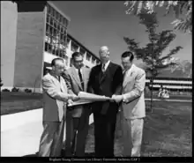 In 1951, Ernest L. Wilkinson became president of Brigham Young University (BYU). He invited Taylor to work at BYU, to which Taylor first declined. Wilkinson kept trying to convince Taylor to work at BYU, and after a year, he acquiesced. Taylor requested that his pay be equal to or higher than what he was receiving at Mesa Union High School. He also asked for the position of Vice President of BYU. A salary was arranged, and the school board allowed him to have the title of Executive Assistant to the President. An announcement was made on January 5, 1953, that Taylor would transfer to Provo, Utah. Once in Provo, Taylor worked from the Karl G. Maeser Building while the new administration office was under construction. Taylor was made chairman of the Administration Building when its construction was complete.[1]:12 While at BYU, Taylor and Wilkinson shared different philosophies on education, but Taylor remained a supportive administrator to Wilkinson.[1]:12