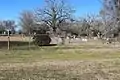 The community was founded in 1874 during the westward expansion of the Galveston, Harrisburg and San Antonio Railway. It was named after Thomas Moore Harwood, a lawyer from nearby Gonzales.[2] At the time of its founding, a community known as Mule Creek was located one mile west of Harwood. A post office operated in Mule Creek from 1872 to 1874, when Harwood was granted a post office. By 1880, Harwood had an estimated population of 155. That figure had grown to 350 by the early 1890s. To prevent the opening of a saloon that was opposed by most local residents, Harwood was incorporated in 1913.[1] The population was 200 at the 1920 census. After rising to 225 in 1930, Harwood slowly declined. Cotton production, which had been a major element of the local economy, decreased during the 1940s. The number of residents living in Harwood fell to 157 in 1950, 132 in 1960, and 112 in 1970. The town disincorporated during the 1970s. By 1990, Harwood had one large farm and ranch supply store, several businesses, and a community center with a collection of local memorabilia. Throughout the latter half of the twentieth century and into 2000, Harwood was home to approximately 112 residents.[1][2]