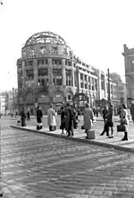 In the Nazi years, the mix of restaurants was modified and the Jewish Kempinskis had to sell the building for a pittance to "Aryans" and leave the country.[29] A 1936 French film, Les Loups entre eux (English title: The Sequel to Second Bureau), features scenes in Haus Vaterland, including "the Horst Wessel song booming from the loud-speaker".[35][36] The business continued to host throngs of customers even after Berlin began to suffer heavy bombing by the Allies. In 1943 the building was damaged, particularly in the central section, in the raid on the night of 22 November that destroyed much of the centre of the city.[37] On 2 February 1945 it was bombed out, only the walls left standing.[29]