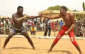 It originally started out among the lower class of Hausa butcher caste groups and later developed into a way of practicing military skills and then into sporting events through generations of Northern Nigerians. It is fought in rounds of three or less which have no time limits. A round ends if an opponent is knocked out, a fighter's knee, body or hand touch the ground, inactivity or halted by an official.