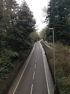 A view down Headington Hill, along Headington Road, from the bridge which now connects two parts of Oxford Brookes campus.