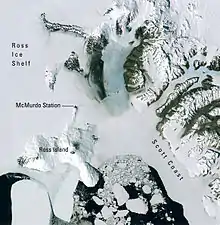 Heald Island (78°15′S 163°49′E / 78.250°S 163.817°E) is an island, 3 miles (5 km) long and 555 metres (1,820 ft) high, which projects through the ice of Koettlitz Glacier just east of Walcott Bay, in Victoria Land, Antarctica. It was discovered and named by the British National Antarctic Expedition (1901–04) for Seaman William L. Heald, a member of the expedition who saved the life of Hartley T. Ferrar when the latter was suffering from scurvy in 1902.[1] In 2012 a cape on Heald Island was named Tuttell Point. The point is on the central part of the southern shore of Heald Island jutting into Koettlitz Glacier,[2] 7.3 miles northwest of Gandalf Ridge, and approximately 10 miles west of Discovery Glacier. The feature is named by US-ACAN BGN for Lieutenant Commander Robert Joseph Tuttell, a Naval Aviator in Antarctic Development Squadron Six (VXE-6). [3]