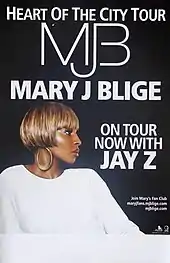 The Heart of the City Tour was a co-headlining concert tour by American singer Mary J. Blige and American rapper Jay-Z.[1][2] The North America tour supports Blige's eighth studio album, Growing Pains (2007) and Jay-Z's tenth studio album American Gangster (2007).[3][4] According to Pollstar.com the Heart of the City Tour grossed over $34.2 million, making it the most successful male-female hip-hop/R&B tour in history. The-Dream was the opening act for the tour, supporting his 2007 debut album Love/Hate.[5]