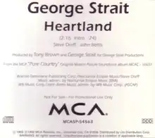 "Heartland" is a song written by Steve Dorff and John Bettis, and recorded by American country music artist George Strait. It was released in January 1993 as the second single from his soundtrack album Pure Country. The song reached the top of the Billboard Hot Country Singles & Tracks (now Hot Country Songs) chart.[5]