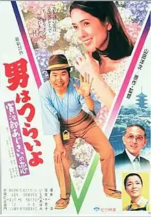Hearts and Flowers for Tora-san (男はつらいよ 寅次郎あじさいの恋, Otoko wa Tsurai yo: Torajirō Ajisai no Koi) is a 1982 Japanese comedy film directed by Yoji Yamada. It stars Kiyoshi Atsumi as Torajirō Kuruma (Tora-san), and Ayumi Ishida as his love interest or "Madonna".[1] Hearts and Flowers for Tora-san is the twenty-ninth entry in the popular, long-running Otoko wa Tsurai yo series.