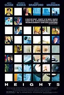 Heights is a 2005 American drama film directed by Chris Terrio and written by Amy Fox, based on her 2001 stage play of the same name. It follows a pivotal twenty-four hours in the interconnected lives of five New Yorkers.[1] It stars Elizabeth Banks, James Marsden, Glenn Close, Jesse Bradford, and John Light. Numerous prominent actors such as Eric Bogosian, George Segal, and Isabella Rossellini appear in supporting roles.
