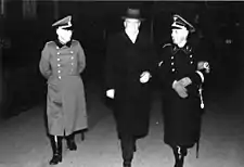 As the Red Army counteroffensive against the Germans arrayed at the Battle of Stalingrad in mid-November 1942 started to take its toll, the exigencies of war demanded an increase in arms production; Müller played his part by responding to and facilitating Himmler's request for an additional 35,000–40,000 forced laborers.[72] The Gestapo Chief rounded them up from across detention centers and prisons which were not yet part of the concentration camp system and sent them to Majdanek and Auschwitz.[73] Sometime in 1943, Müller was sent to Rome to pressure Fascist Italy to cooperate in relinquishing their Jews for deportation.[74][75] Despite having the apparent support of Benito Mussolini, Müller's efforts were not very successful as influential Jewish figures within Italy were in contact with the police and the military; they successfully appealed to their (Italians and Jews) shared religious convictions and convinced them to resist Nazi pressure.[76] In 1943 Müller had differences with Himmler over what to do with the growing evidence of a resistance network within the German state apparatus, particularly the Abwehr and the Foreign Office. He presented Himmler with firm evidence during February 1943, that Wilhelm Canaris was involved with the resistance; however, Himmler told him to drop the case.[77] Offended by this, Müller became an ally of Martin Bormann, the head of the Nazi Party Chancellery, who was Himmler's main rival.[78]