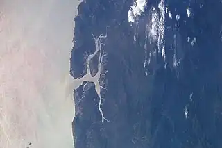 NASA picture of the Heinze River mouth. The northernmost Heinze Islands can be discerned in the lower left corner